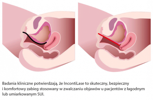 To nowoczesna, niewymagająca operacji metoda, która polega na pobudzaniu produkcji kolagenu w błonie śluzowej oraz w powięzi wewnątrzmiednicznej. W efekcie dochodzi do zwiększenia napięcia tkanek poddanych zabiegowi, zmniejszenia kąta nachylenia i przywrócenia normalnej funkcjonalności cewki moczowej. Poprzez obkurczenie ścianek pochwy kobiecie zostaje przywrócony komfort, odzyskuje ona radość ze współżycia oraz może mieć intensywniejsze doznania podczas seksu. Efekt jest długotrwały, a regularne ćwiczenia mięśni Kegla podtrzymują go na dłużej.
